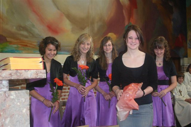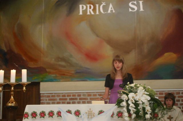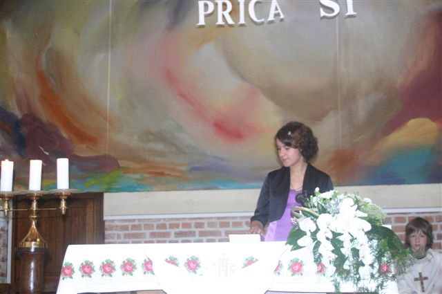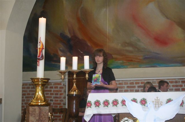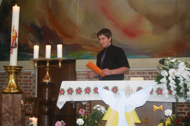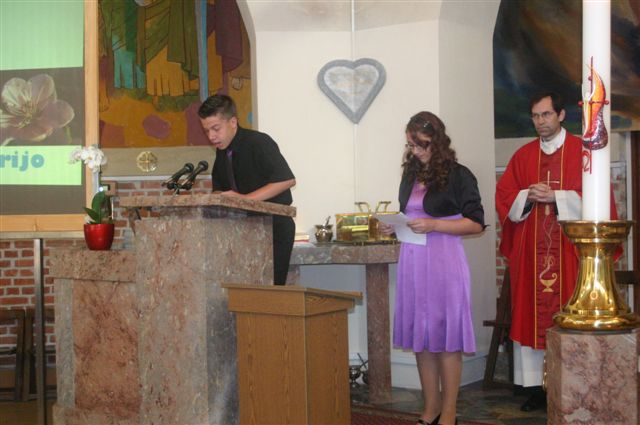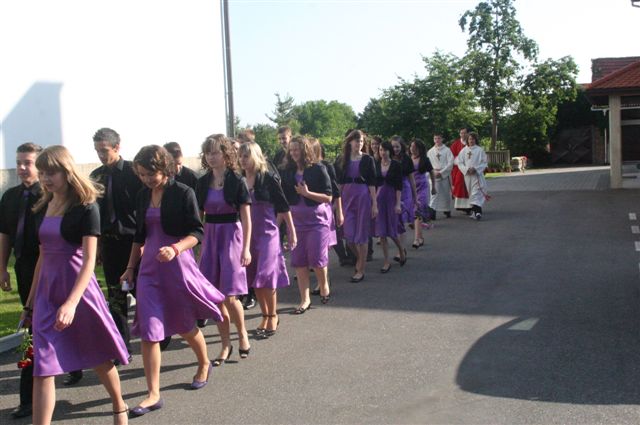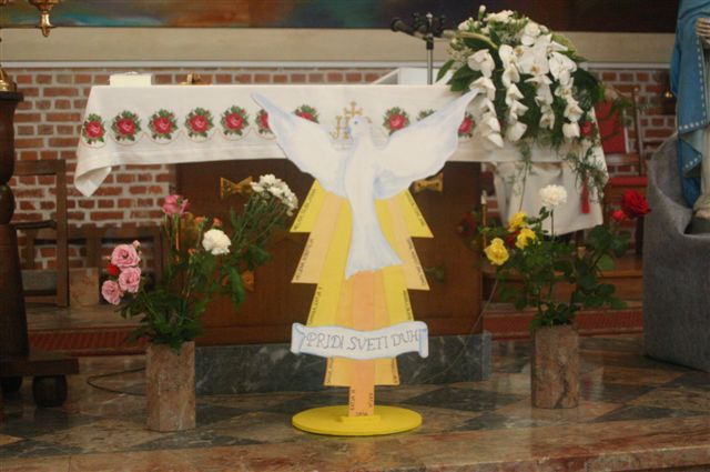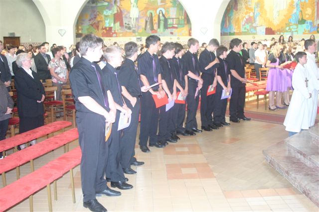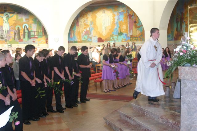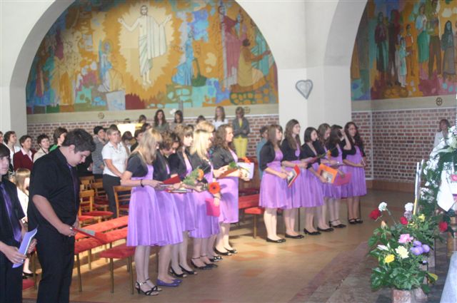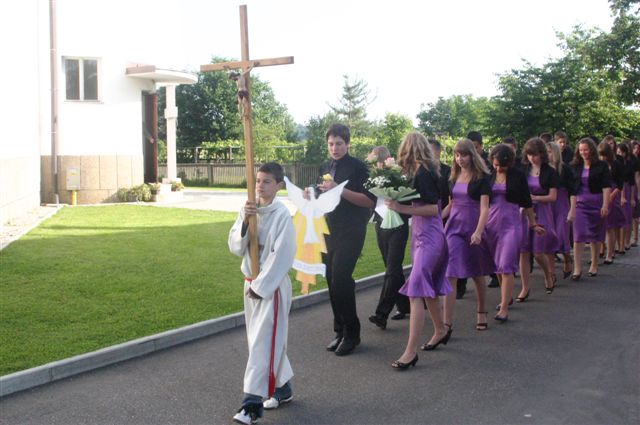 Na binkoštno nedeljo, 31. maja 2009, je 22 devetošolcev slovesno izpovedalo vero in izreklo obljubo o nadalnjem verskem življenju. V znamenje hvaležnosti za vse, kar so dobrega prejeli, so pred Marijino podobo prinesli cvetove. Nato je vsak stopil k oltarju, položil desnico na Sveto pismo in izrekel besede: S teboj, Jezus. Nato je podpisal izjavo, ki jo je pred tem prebrala predstavnica razreda. Ob koncu svete maše so se devetošolci zahvalili staršem, katehetu in vsem, ki so jim spremljali v teh letih.
