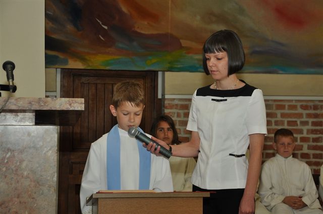 Prvoobhajanci so v spremstvu staršev v slovesnem sprevodu vstopili v cerkev. Tam so prejeli prižgane sveče in nato obnovili krstne obljube. Sodelovali so z branjem beril, s prošnjami in zahvalno molitvijo.