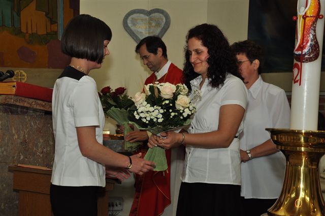 Ob koncu sv. maše je predstavnica staršev izrekla zahvalo katehistinji in župniku, člani Župnijske karitas pa so prvoobhajancem izročili mošnjiček z rožnim vencem.