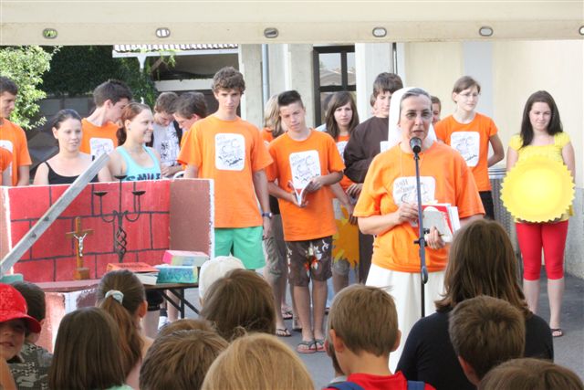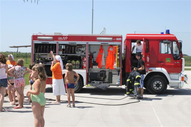 Ker je bil dan zelo vroč, so se zelo prilegle vodne igre, ki so jih pripravili animatorji. Hladno prho pa so jim po predstavitvi svojege dela omogočili tudi odranski gasilci. Tako se je četrti oratorijanski dan končal s hvaležnostjo vsem, ki so obogatili ta dan: sestram, animatorjem, ravnateljici in gasilcem.