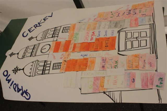 Otroci so na listke zapisali svoja imena in jih pritrdili na sliko odranske župnijske cerkve. S tem so povedali, da želijo tudi oni graditi Cerkev. Nekateri kot ministranti, drugi kot pevci, raznašalci verskega tiska, animatorji...