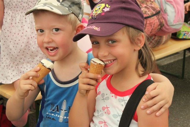 Otroci so se zelo razveselili, ko jih je obiskala ravnateljica Osnovne šole gospa Marija Smolko. Veseli so bili tudi hladnih sladkarij, ki jih je prinesla.