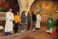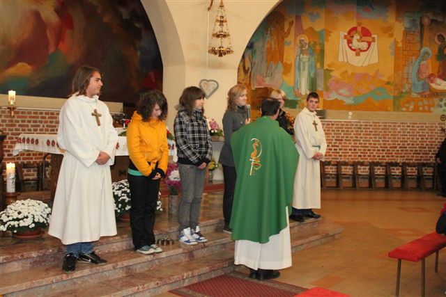 Pri vsaki sveti maši se obračmo k Bogu s prošnjami. Ker je bila zahvalna nedelja, smo namesto prošenj izrekli zahvale. Učenci 8. razreda so se v imenu vseh zbranih Bogu zahvaljevali za dušne pastirje, torej za papeža, škofa, duhovnike, zahvaljevali so se za starše in vse dobre ljudi, za pridelke, za izdelke človeškega uma in človeških rok, za zdravo okolje, za Božjega služabnika Danijela Halasa...