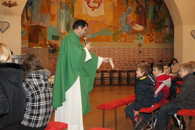 V pridigi smo se spomnili darov, ki jih prejemamo. Ena učenka je na list papirja z rjavim flomastrom narisala črto. Seveda rjavo. Nato so navzoči dobili nalogo, da z rjavim flomastrom narišejo zeleno črto, ali pa rdečo, ali rumeno. Noben niti ni poskusil. Rekli so samo, da se to ne da narediti. Res, človek tega ne zmore, narava pa zmore in to dela. Iz rjave zemlje zraste solata, ki je zelene barve, zraste paradižnik, ki je rdeče barve, zraste roža, ki je bele barve. Vse to deluje samo po sebi, ker je vse to zapisano v semenih. Semena vedo prebrati ta zapis in se po tem zapisu ravnajo. Pred to skrivnostjo lahko strmimo, se čudimo in hvalimo Boga, ki je vse tako modro uredil. K hvaležnosti vabi tudi božja beseda 32. navadne nedelje. Žena je preroku dala zadnji košček hrane. Bila je hvaležna Bogu za življenje, za vse darove. Zato je bila sposobna dati vse. Hvaležnost torej ni samo v besedi hvala, temveč se kaže predvsem v dejanjih, v življenju. Bog je hvaležen, se pravi, da vidi vsako človeško dejanje in ničesar ne ostane dolžan. Moka v loncu ne bo pošla in olja v vrču ne bo zmanjkalo, je prerok rekel ženi. In tako je tudi bilo ves čas sušnega obdobja, ko je v deželi vladala lakota. Jezus je pohvalil revno vdovo, ki je podarila dva novčiča, nekaj neznatnega, toda to je bilo vse, kar je žena imela. Dar se ne ceni po denarni vrednosti, temveč Bog vidi v srce in pravično presoja.