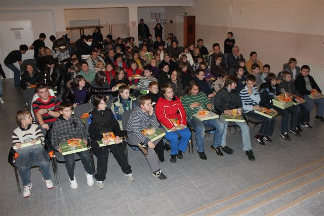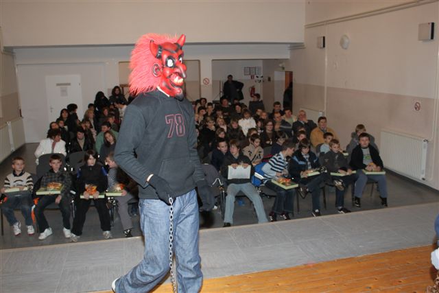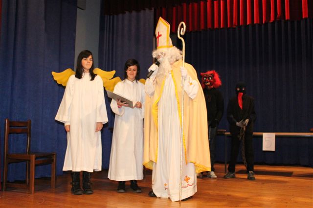 Ob 17. uri so se učenci od 3. do 9. razreda zbrali v kulturni dvorani. Zaradi bolezni je igra Katja brez veze, ki so jo pripravili učenci 8. razreda, odpadla, oziroma jo bodo odigrali ob drugi priložnosti. Namesto igre je otroke in druge zbrane razveseljeval Miklavžev kviz, ko so eni peli, drugi pa ugotavljali slovenske narodne in cerkvene pesmi. Vsi so se odlično izkazali, zato je bil z njimi zadovoljen tudi Miklavž, ki je vsem prinesel lepa darila. Miklavžu je pri darilih pomagala tudi Župnijska karitas.