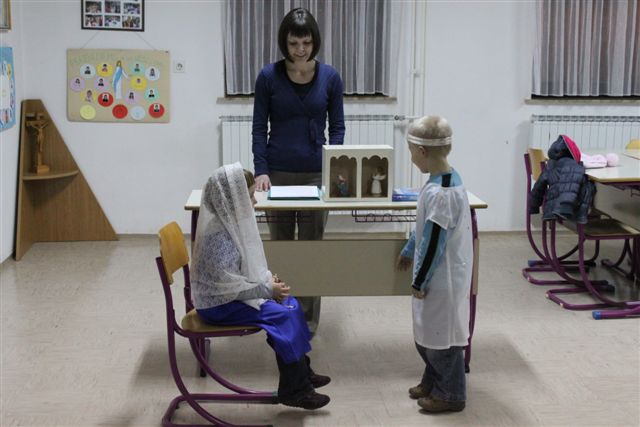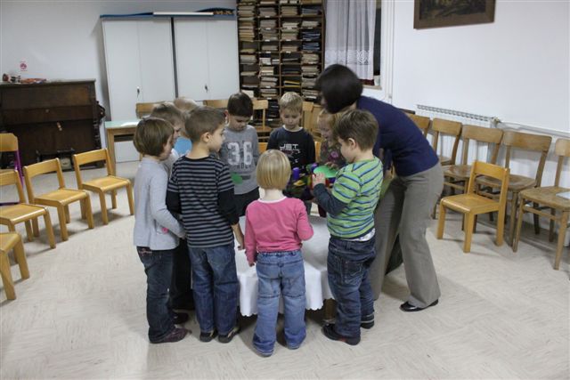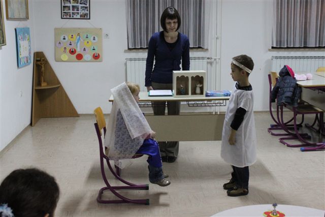 Pri svetopisemskih uricah se je zbralo deset otrok, ki so z navdušenjem spremljali zgodbo o Mariji, ki jo je obiskal angel Gabriel. Niso le poslušali, temveč so zgodbo tudi odigrali. Niso manjkale niti pesmi, ki so jih navdušeno prepevali. Naredili so pisan cvet, da bodo z njim razveselili nekoga od svojih najbližjih. Srečanje je pripravila in vodila katehistinja Klavdija Dominko, pomagali sta ji animatorki Tajda Kolarič in Melisa Graj.