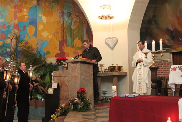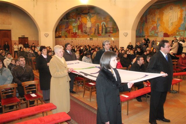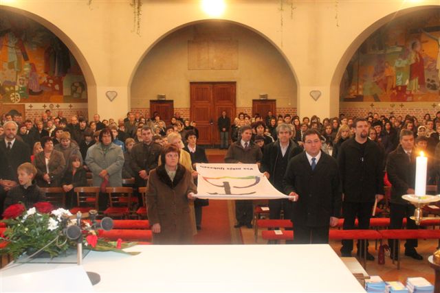 Po evangeliju so člani ŽPS med petjem himne Kozarjevega leta Prelepo ravno je polje dvignili zastavo s simbolom in geslom Kozarjevega leta. V pridigi je župnik zastavil vprašanje Zakaj Kozarjevo leto in nakazal odgovore. Pojasnil je pomen gesla in znaka na zastavi.