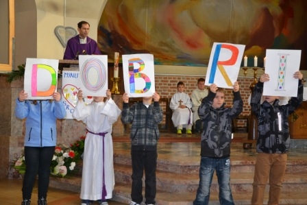 Ob koncu tedna družine smo se pri nedeljski maši spomnili staršev in se Bogu zahvalili za matere in očete. Učenci 1. in 2. razreda so doma narisali vsak po eno črko in sestavili so napis: Dobri Jezus, hvala za starše. Starši so dar. Starši, ki otrokom posredujejo krščansko vero, ki otroke usmerjajo k Bogu, so dragoceni dar, za katerega se lahko nenehno zahvaljujemo Bogu. Bogoslužje so bogatili tudi pevci najmlajšega zbora pod vodstvom Nuše Zadravec. Na vlogo matere je spomnila tudi Minuta za srce, ko nas je nagovorila misel msgr. Lojzeta Kozarja: Mati ti pride prva naproti. Vedno je tako: mama pride otroku prva naproti, ko je v težavah, ko zablodi, ko potrebuje pomoč. Pa tudi Nebeška mati Marija nam pride prva naproti. Zato se nanjo vedno lahko zanesemo.