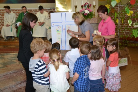 Ob koncu svete maše so se starši zahvalili župniku in katehistinji za dragocena srečanja. Istočasno so se namreč v drugem prostoru s Svetim pismom srečevali tudi starši.