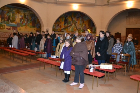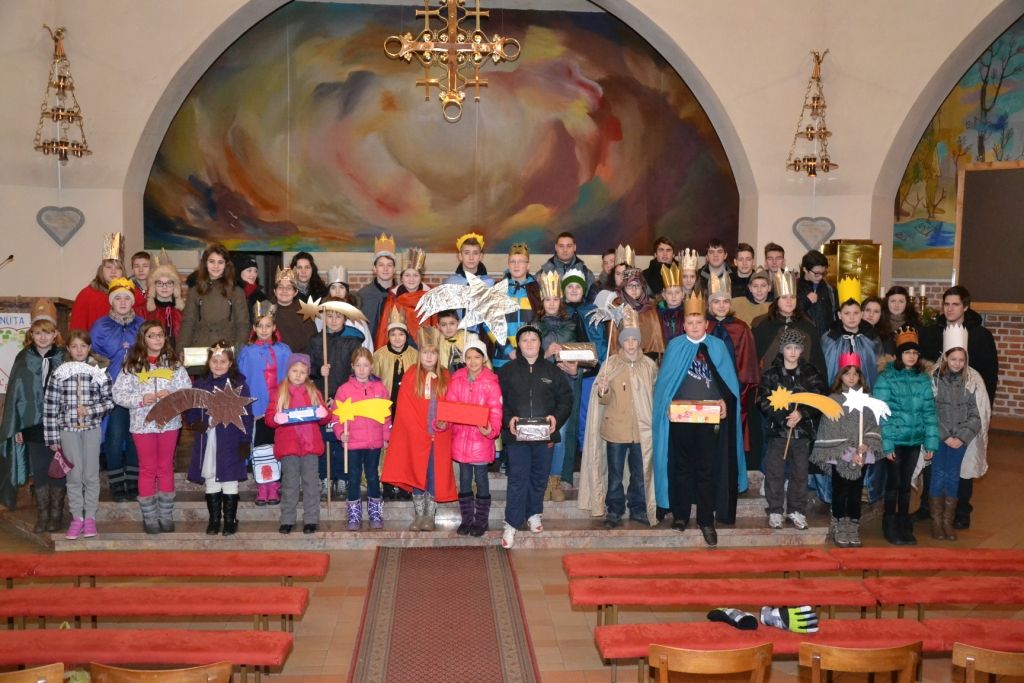 ?Glejte, trije kralji, v lepi, zlati halji, na kamelah jezdijo.? S to pesmijo so koledniki, razdeljeni v deset skupin, prinašali k vsem družinam veselo oznanilo o Jezusovem rojstvu. Obenem so zbirali darove za projekte slovenskih misijonarjev, letos tudi za naši rojakinji s. Agato Kociper in za s. Mileno Zadravec. Svoje poslanstvo so začeli v župnijski cerkvi pri sveti maši, ko so se najprej sami srečali z Jezusom, nato pa to veselje, ki je polnilo njihova srca, ponesli med ljudi. Povsod so bili deležni lepega sprejema, darov za misijonarje in tudi sladkih darov zase. Vračali so se veseli in ponosni na poslanstvo, ki so ga opravili. Veselili so se tudi 2.853 eur, ki so jih zbrali za otroke in mlade v misijonskih deželah. Hvaležni so Bogu, da so lahko opravili dobro delo. Hvaležni so ljudem za obojne darove. Hvaležni so tudi animatorjem, ki so jih spremljali na poti in že prej pripravili vse potrebno za izvedbo koledovanja.