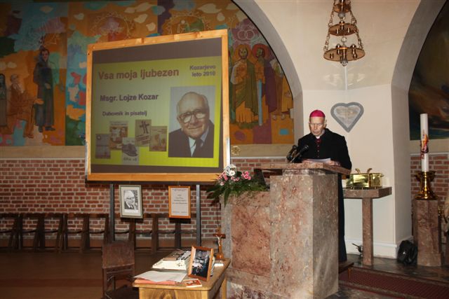 Po sveti maši so vsi zbrani zapeli himno Kozarjevega leta pesem Prelepo ravno je polje. Nadaljnji program je povezovala Klavdija Dominko, članica odbora Kozarjevega leta. K mikrofonu je najprej povabil škofa dr. Jožefa Smeja, ki je spregovoril o treh Kozarjevih knjigah Takšen prag, Topla babičina dlan in Licenciat Janez. Svoje razmišljanje je sklenil z besedami: