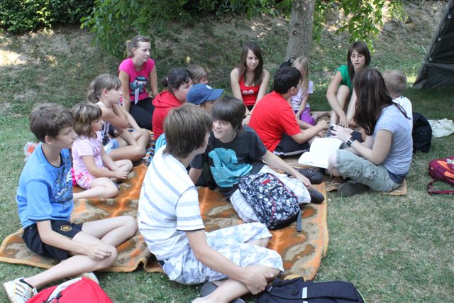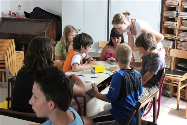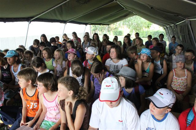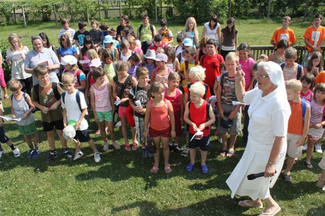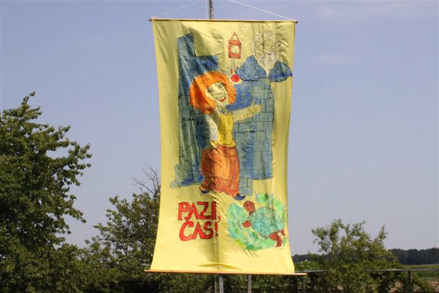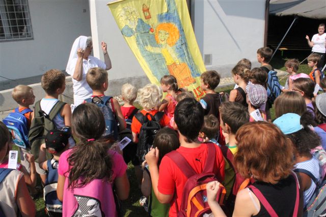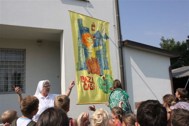 Pazi, čas! To ni samo geslo letošnjega oratorija, to je klic za vsakega izmed nas. Pazi, čas je za oratorij! Čas je za veselo druženje. Čas je za petje, molitev, igro, delavnice, čas je za vse lepo in dobro. 77 otrok se je odzvalo temu klicu, pa tudi 22 animatorjev, ki so skupaj s s. Cilko Hozjan in s s. Marto Zadravec pripravili in izpeljali prvi dan oratorija. Animatorji so odigrali prvi prizor in predstavili Momo, deklico, ki je nekaj posebnega. Po dvigu zastave in zapeti himni je potekal začrtan program: kateheza, pogovor, delavnice, igre. Ob treh se je s spustom zastave končal prvi dan oratorija, ko so otroci odšli na svoje domove, da se naslednji dan spet veseli vrnejo.