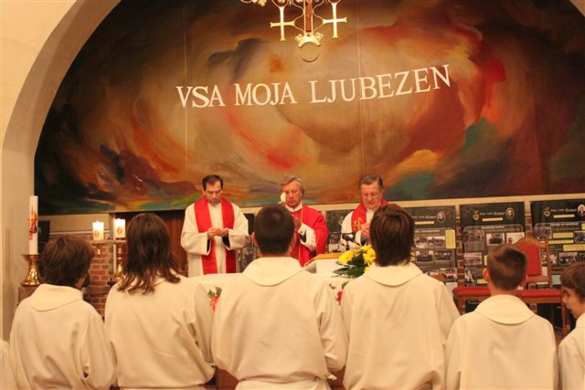 Po sveti maši so si verniki ogledali odlomek dokumentarnega filma o msgr. Lojzetu Kozarju z naslovom Korenine mojega življenja.