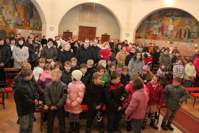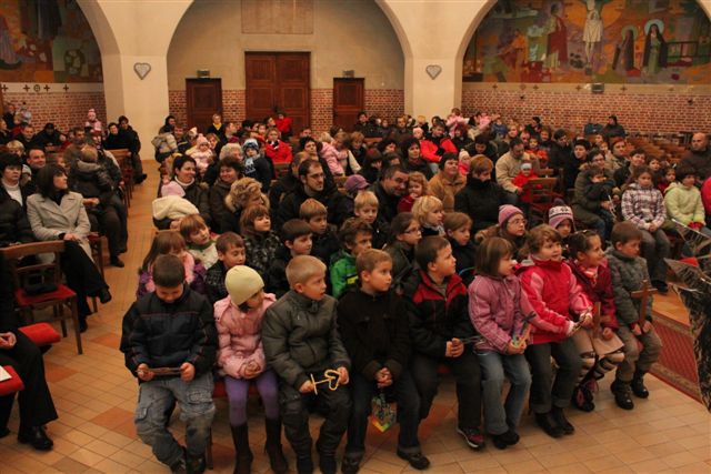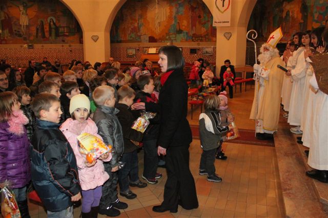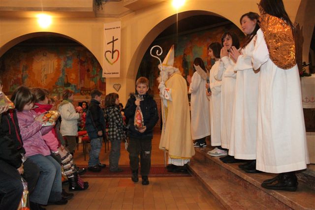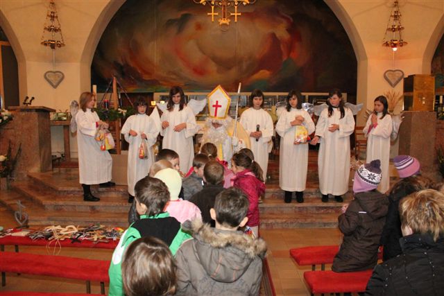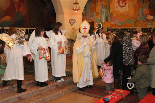 Otroci od drugega leta starosti do 2. razreda osnovne šole so se s svojimi starši v soboto popoldne zbrali v župnijski cerkvi, da bi s sveto mašo počastili Boga, obenem pa se pripravili na prihod svetega Miklavža. S petjem so sodelovali učenci 1. in 2. razreda, ki jih je vodila katehistinja Klavdija Dominko. V homiliji je župnik spregovoril o zgledu dobrote, o svetem Miklavžu pa tudi o pokojnem župniku msgr. Lojzetu Kozarju. Oba sta bila zelo dobra, zato sta oba v nebesih. Otroci so prinesli izdelan simbol Kozarjevega leta, s katerim bomo okrasili božično smreko v cerkvi. Po sveti maši je prišel Miklavž v spremstvu angelov in otrokom razdelil darila, ki so mu jih pomagali pripraviti člani Župnijske karitas.