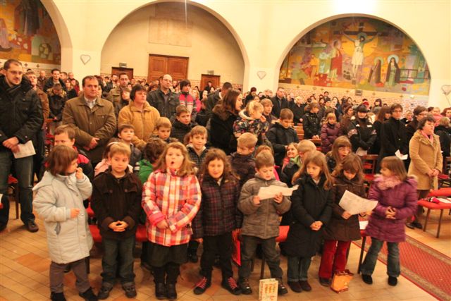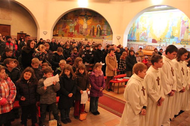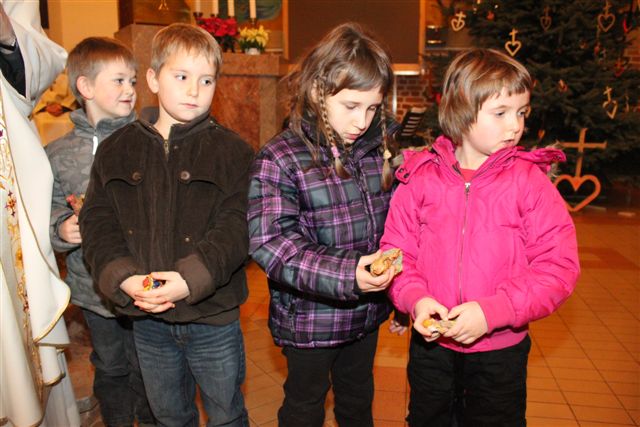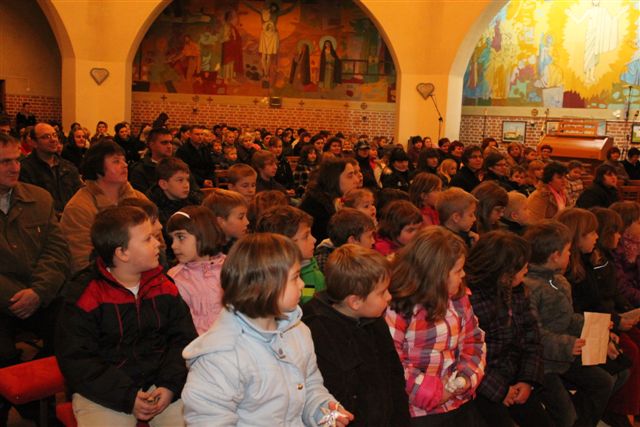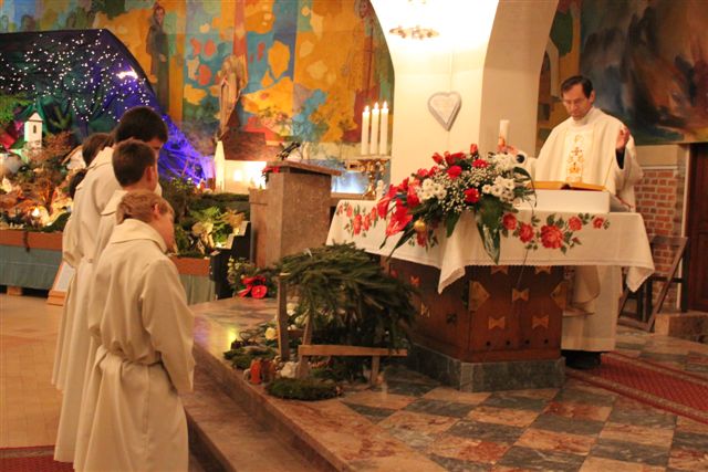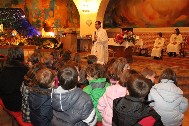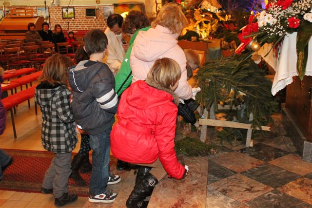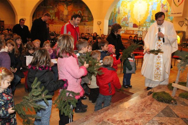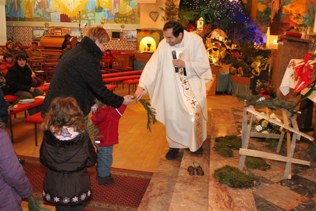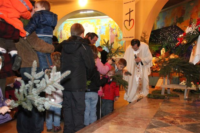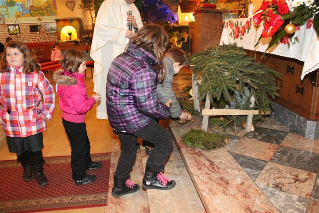 Na sveti večer je bila tako imenovana otroška polnočnica, h kateri je prišlo veliko otrok, njihovih staršev in tudi drugih vernikov. Peli so otroci 1. in 2. razreda pod vodstvom katehistinje Klavdije Dominko in ob glasbeni spremljavi Nuše Zadravec. Po evangeliju so otroci skupaj postavili jaslice, ko so prinašali smrekove vejice za pokrivanje štalice, ter posamezne figure. Tako so obnovili božično zgodbo in se spomnili, da danes angeli nas vabijo k Jezusu.
