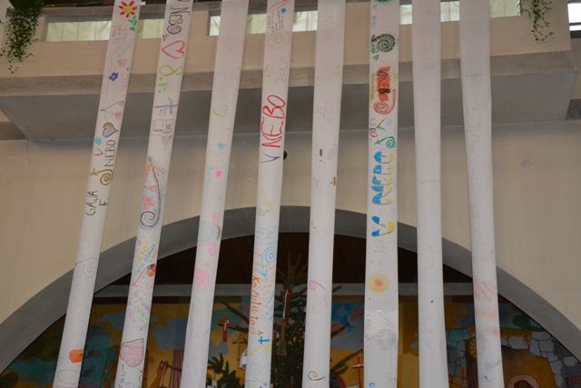 V soboto, 26. januarja 2019, se bo 6. župnijski misijon začel z obiskom prvih misijonarjev, že to nedeljo pa so vse udeležence sv. maše na ta dogodek opozarjali trakovi, ki so jih pri urah verouka izdelali šolarji posameznih razredov. Nanje so napisali geslo misijona V nebo, narisali logotip in zapisali še razna besedila. Tako smo ob dveh parih zlatoporočencev izrekli Bogu zahvalo za to, kar je zapisano v prvem berilu: ?Kakor se ženin veseli neveste, tako se tebe veseli tvoj Bog.? Ker nas Bog ima rad, želimo gledati V NEBO, želimo tako živeti, da nekoč pridemo k njemu V NEBO, kar je tudi geslo župnijskega misijona, ko nas bodo vsak mesec zadnjo soboto in nedeljo nagovarjali redovniki in redovnice različnih redov ter škofje, ki izhajajo iz določenega reda.