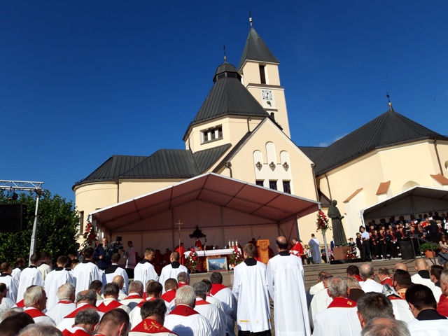 Po molitvenem in pričevanjskem programu, ki so ga pripravili hrvaški in slovenski bogoslovci, je bilo pred župnijsko cerkvijo somaševanje slovenskih in hrvaških škofov ter duhovnikov, ki ga je vodil zagrebški nadškof kardinal Josip Bozanić. V pridigi je zbrane nagovoril mariborski nadškof Alojzij Cvikl in med drugim spomnil na blaženega Stepinca, ki je med drugo svetovno vojno sprejel čez 350 slovenskih duhovnikov in jih poslal na različne župnije ter jih tako rešil taborišča in verjetno tudi smrti. Slovenski romarji so kardinalu Bozaniću podarili sliko Triglava v spomin na blaženega Stepinca, ki je letoval na Gorenjskem in se ob tej priložnosti povzpel tudi na Triglav.